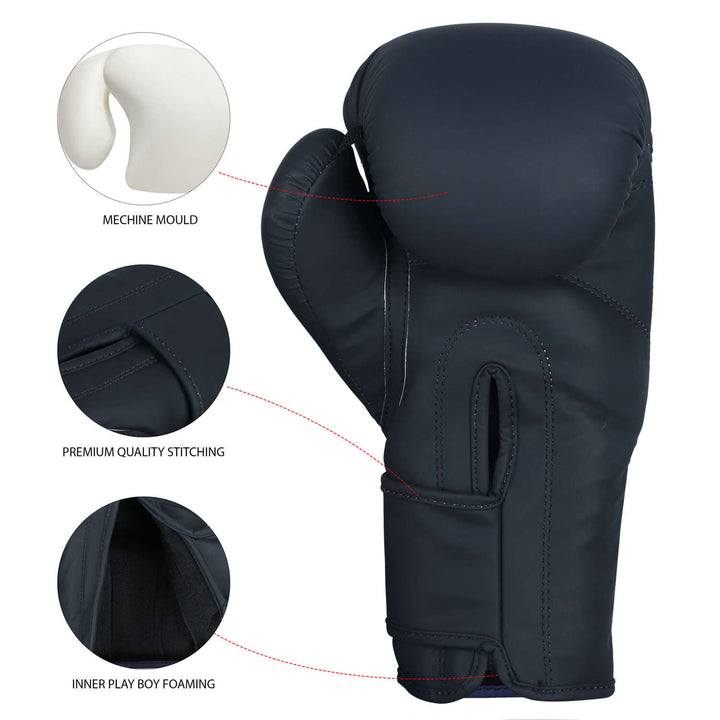 Get ready to take your training to the next level with these high-performance boxing gloves. The solid full Velcro wrist wrap ensures a secure fit, while the rexine artificial leather PU flex material and high-quality mould padding provide maximum cushioning against high-impact shots. The premium quality stitching and polyester thread used in the construction ensure long-lasting durability. The soft inner lining provides added comfort, while the T3 material manages moisture and controls temperature, making this glove perfect for high-performance training.