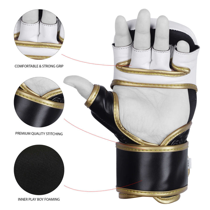 Take your training to the next level with these high-quality boxing gloves that offer both comfort and a strong grip. The moisture protect lining ensures that your hands stay dry, while the flex form curve allows for a comfortable fit. The premium quality stitching and polyester thread used in the construction ensure long-lasting durability. The artificial leather PU flex material and high-quality double Velcro with wrist support provide added protection. The multi-layer high tech foam, knuckle padding, and pre-curved design make it easy to form a fist for maximum performance. After each use, simply wipe dry inside and out and dry flat in the shade in a well-ventilated area. Do not machine wash or tumble dry, and never soak or saturate leather fight gear in water. These gloves are a must-have for anyone serious about their boxing training.