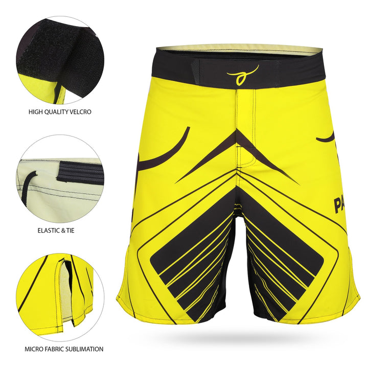 Looking for comfortable and durable MMA shorts? Look no further! Our shorts are made with a blend of 87% polyester and 13% spandex, and the micro fabric sublimation offers long-lasting color. The high-quality stitching and reinforced seams resist sleeve pulls and stretching. Our fitted cut, lightweight, and breathable Lycra fabric keeps you cool and comfortable, while the side split design allows for a greater range of motion. The high-quality velcro, elastic, and tie ensure a secure fit during your grappling and Muay Thai training. Don’t bleach, wash inside out for the best care.